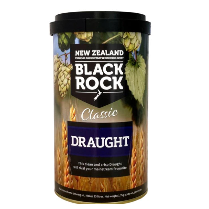 Black Rock Classic Draught is a classic full-bodied, easy-drinking brown beer that will be familiar to many NZ beer drinkers (Think Speight's, Waikato Draught, Lion Red). This popular session beer is both satisfying and thirst-quenching with full-bodied malt character from the Crystal and Black specialty malts balanced with a moderate bitterness . Brew with 1kg Black Rock Liquid Brewing Sugar (or 1kg other sugar) for a cleaner finish. For more body, colour and malt flavour use 1.7kg Light unhopped malt extract instead of sugar.